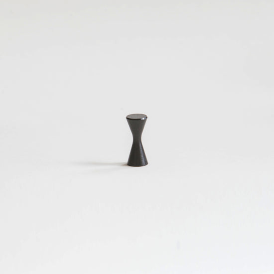 An elegant aluminum knob in brushed black, shaped with a subtle diabolo-inspired silhouette. Its slim, tactile form brings a refined modern accent to cabinets and drawers.