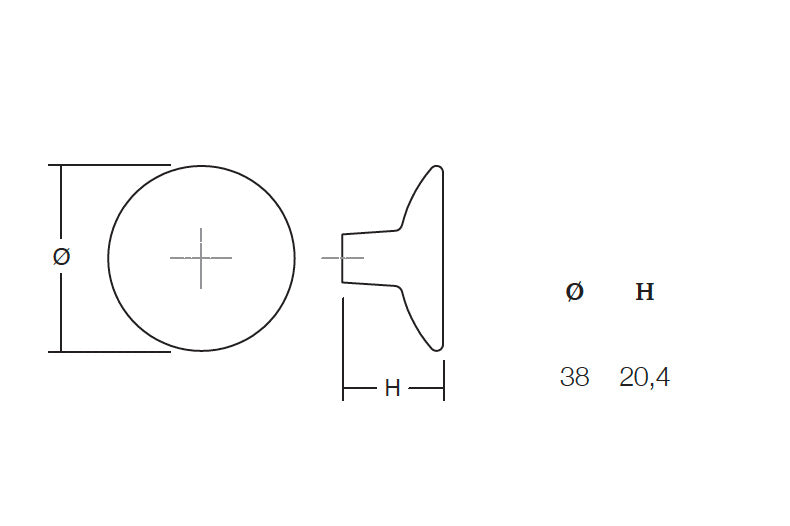 DIMENSIONS: Diameter 38 mm / Projection (Height) 20.4 mm